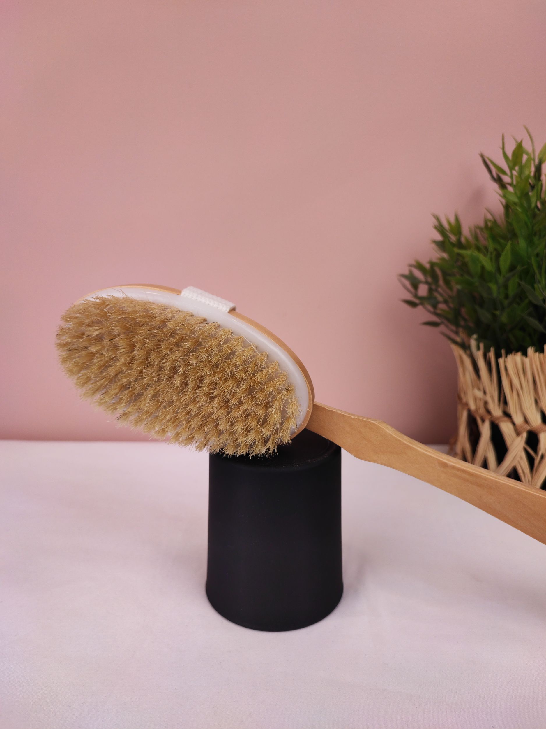 - Brosse pour le dos avec poignée longue : En bois d’hému, poil doux, manche cousu très pratique pour la prise en main.
